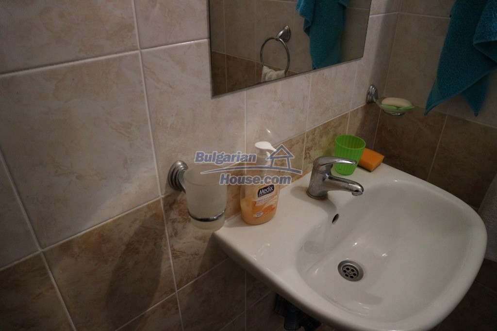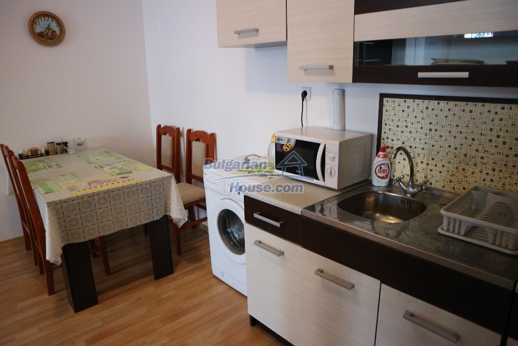 BULGARIAN HOUSE - REAL ESTATE offers for sale this one bedroom apartment with garden view. The apartments is located on the ground f floor in the complex Sunny day 6. It is for sale fully furnished with one double bed and two single beds on two floors, wardrobe, air conditioner. In the kitchen there are two sofas, cupboards, table with chairs and some kitchen staff. Total living area is 62 sq.m