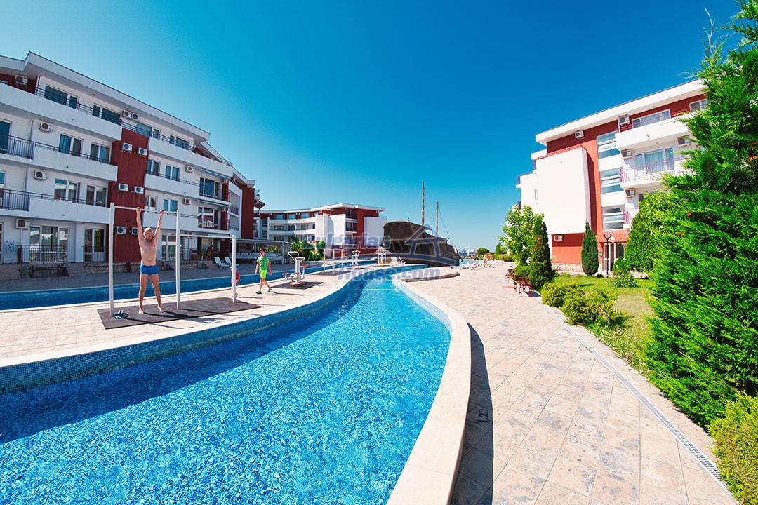 The wonderful sandy beach, the nearby Aqua park, supermarket, taxi and bus service make the complex ideal place for summer vacation on the Bulgarian Black sea coast. In “Privilege Fort Beach” you will find everything you need for a comfortable and relaxing holiday with your family! You and your children can enjoy the pools, the Jacuzzi and the artificial river floating through the complex. All the pools have life-guards. The sun lounges around the pools are free of charge.