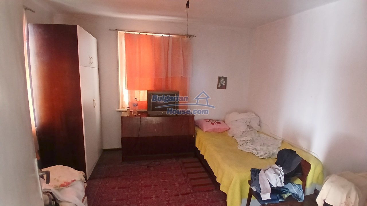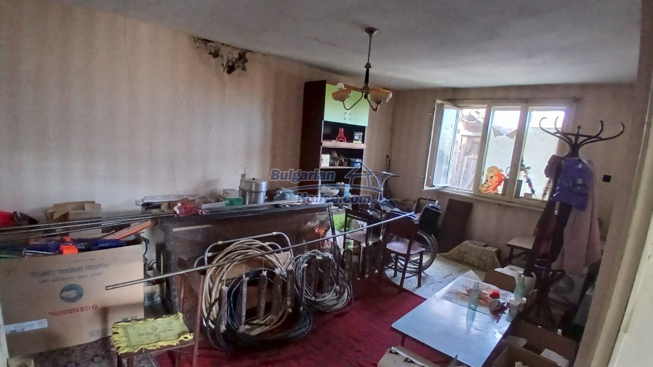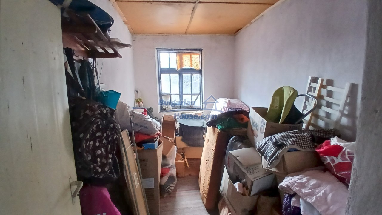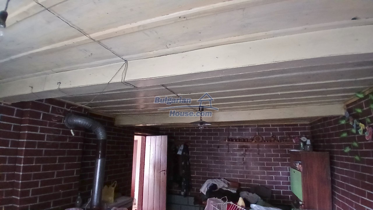 We are pleased to offer you this two - storey brick built up Bulgarian house for sale. The house has living area of around 140 sq.m. and consists of a corridor, living area, one bedroom and a storage place. The floor is cement and windows here has PVC frames. Ceilings has the typical Bulgarian style with wooden beams. Recently covered with some boards, but when doing renovations they can be open.